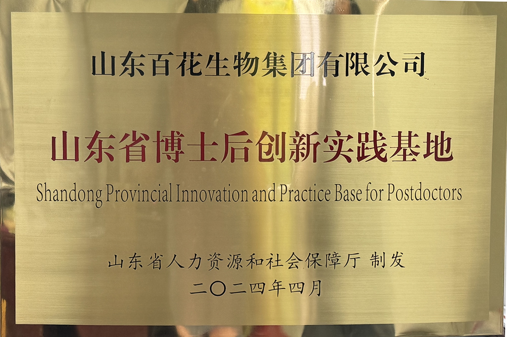 根據(jù)《山東省博士后創(chuàng)新實踐基地管理辦法》有關(guān)規(guī)定,2024年山東省博士后創(chuàng)新實踐基地認(rèn)定名單(第四批)正式公布,認(rèn)定山東百花生物集團(tuán)有限公司為山東省博士后創(chuàng)新實踐基地,授予“山東省博士后創(chuàng)新實踐基地”牌匾。