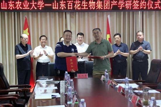 熱烈慶祝山東百花生物集團(tuán)有限公司與山東農(nóng)業(yè)大學(xué)簽訂產(chǎn)學(xué)研合作協(xié)議